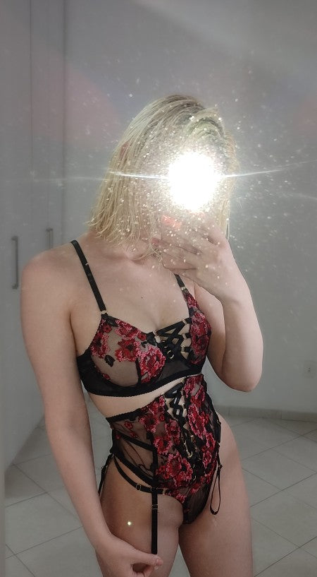 • Ensemble 4 pièces – soutien-gorge + porte-jarretelles + string + tours de cuisses